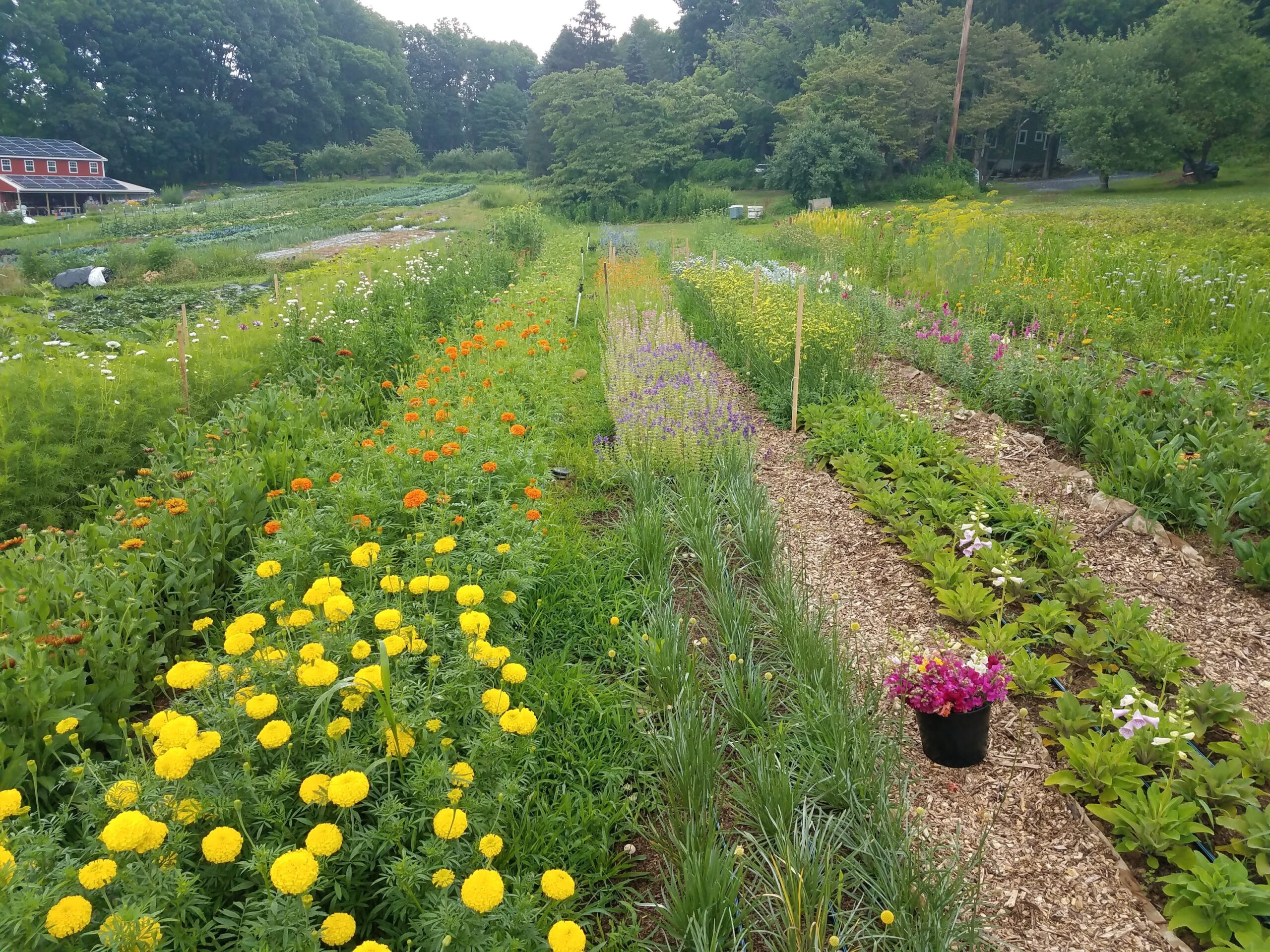 We farm in a way we feel is healthy for ourselves, our land, and our community. To increase the health of our soil, the farm is no till—that means we do not use tractors or other machinery to turn the soil. Tilling land releases carbon into the atmosphere, whereas farming without tillage sequesters carbon. This is mentioned to shed light on yet another damaging aspect of industrial agriculture, not to demonize small farmers who till. In fall of 2018, we decided to buy a tractor to relieve our bodies from having to do some of the hardest and most time-consuming physical labor. Before that, we accomplished all farmwork with our pick up truck, shovels, rakes, wheelbarrows, and other hand tools. Each spring we fertilize with composted plant materials and manures. We don’t use any synthetic chemicals and we are non-GMO. We do use a few OMRI-listed biological controls. OMRI-listed means they are approved for use by certified organic farms. Our farm is not certified organic and we do not plan to become certified. We are transparent about our farming practices and welcome any questions! This is abundantly productive agriculture, and we are proud of the methods we use.
